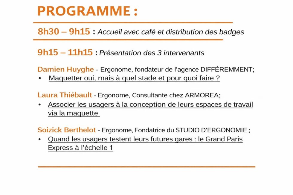 Les étudiants du Master STAPS : Ingénierie et Ergonomie de l’Activité Physique, de l’université de Rennes 2, nous invite à participer à leur séminaire annuel : Place du maquettage dans la conception et l’aménagement de l’environnement de travail